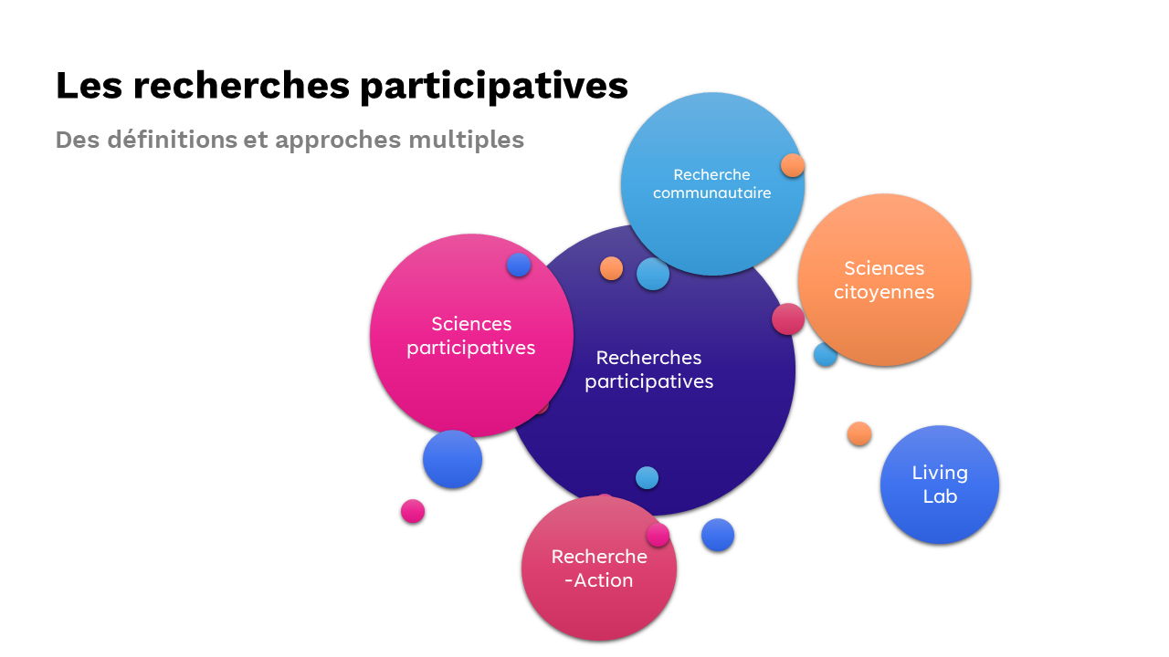 Il n'existe pas à ce jour de définition univoque : le terme "recherches participatives" englobe une pluralité de pratiques de collaboration entre chercheurs et acteurs de la société civile (associations, citoyens, collectivités, etc.).